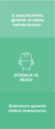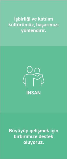 Çalışanlarımıza dürüst, adil, mutlu ve güvenli bir çalışma ortamı sağlarız. Çalışanlarımızın yeteneklerinden azami fayda sağlamak; gelişmelerine imkân tanımak, iş birliği ve dayanışmanın yeşerdiği bir çalışma ortamı yaratmak hedefimizdir. Mutlu ve verimli çalışmanın üründe ve hizmette kaliteyi getirdiğinin bilincindeyiz.